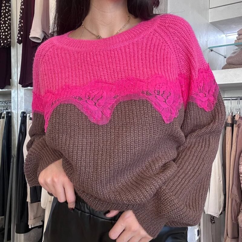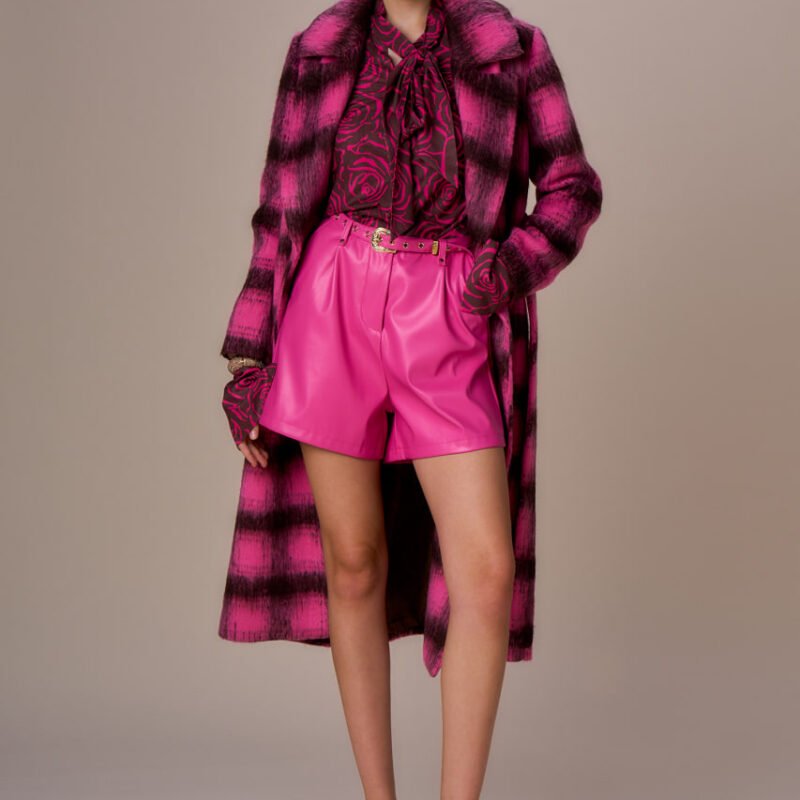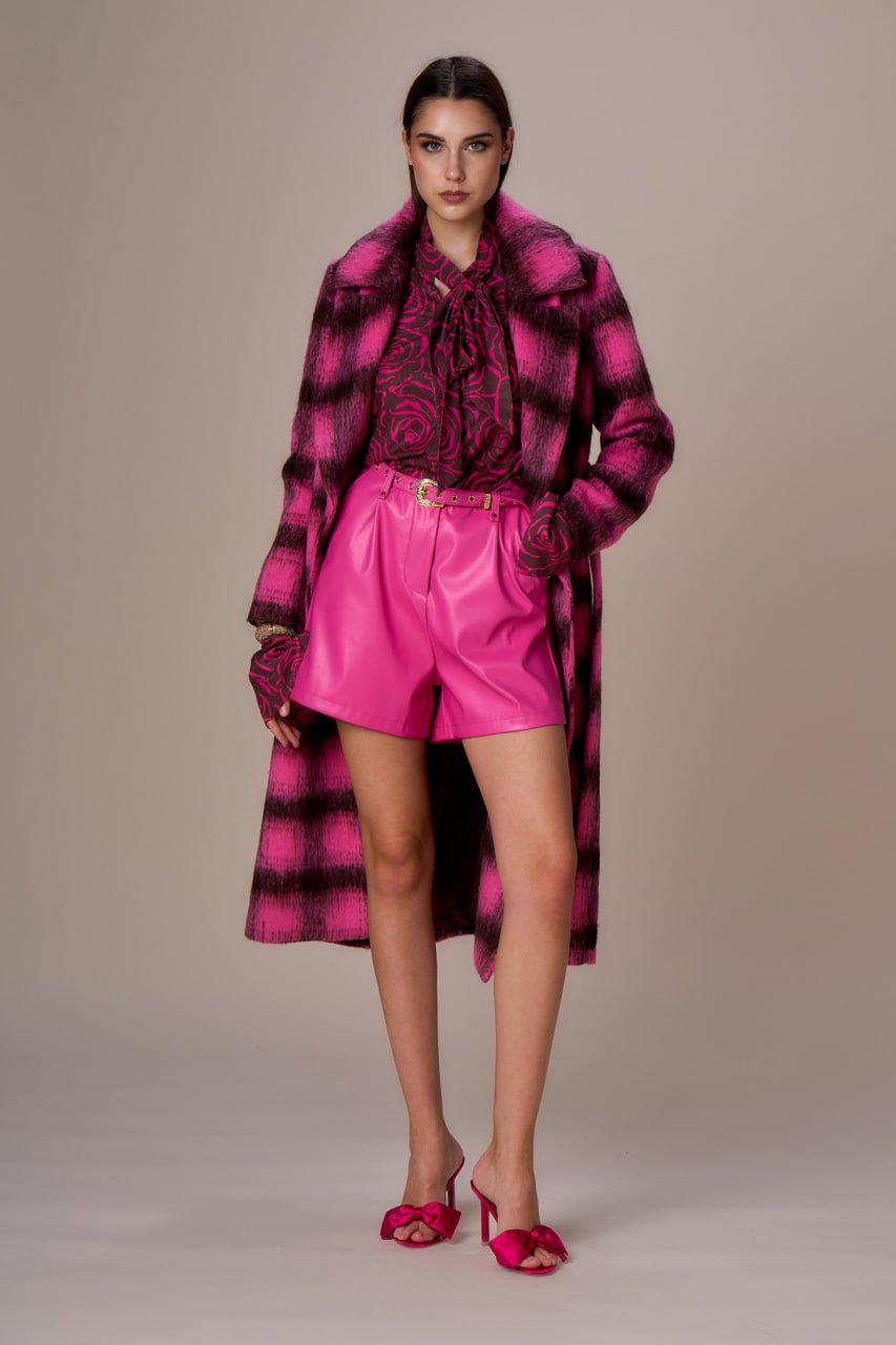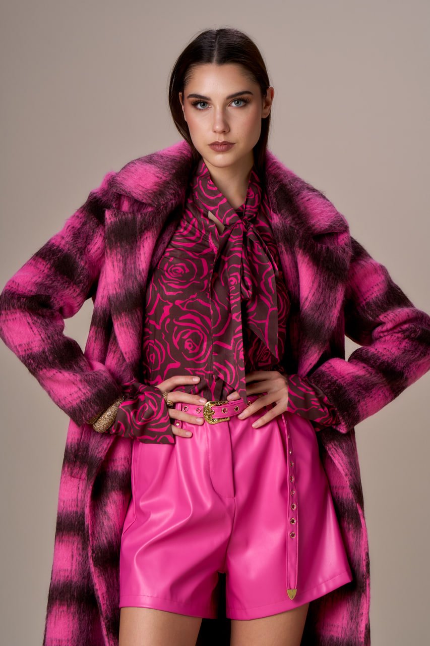 CAPPOTTO LUNGO CON CINTURA BICOLORE ROSA E CIOCCOLATO .