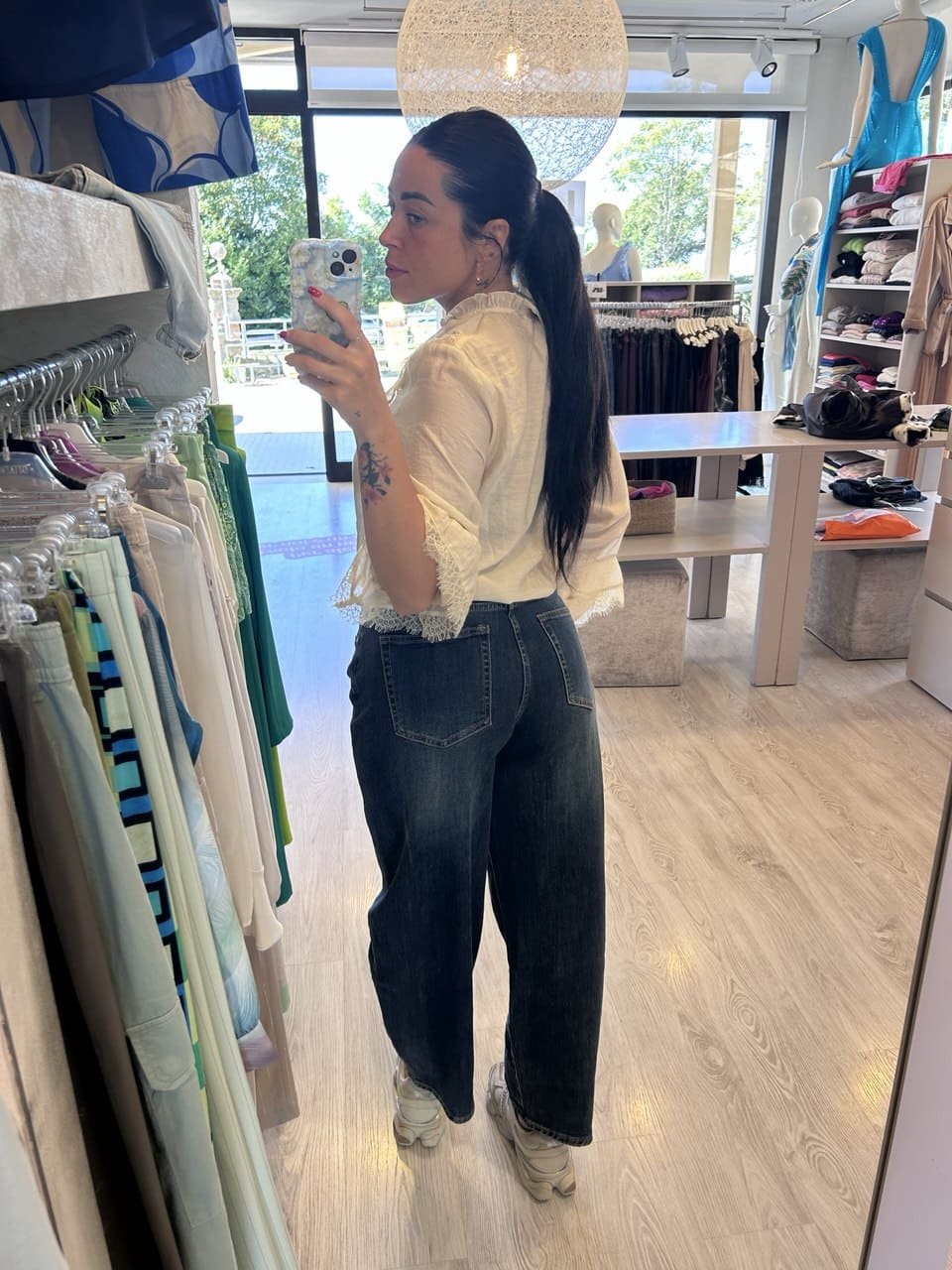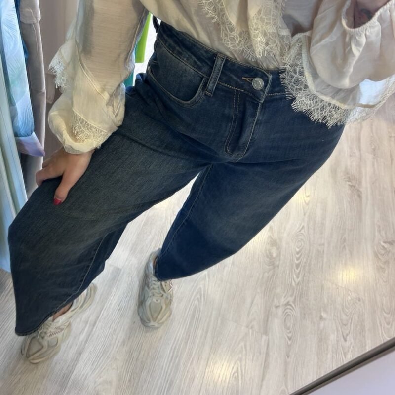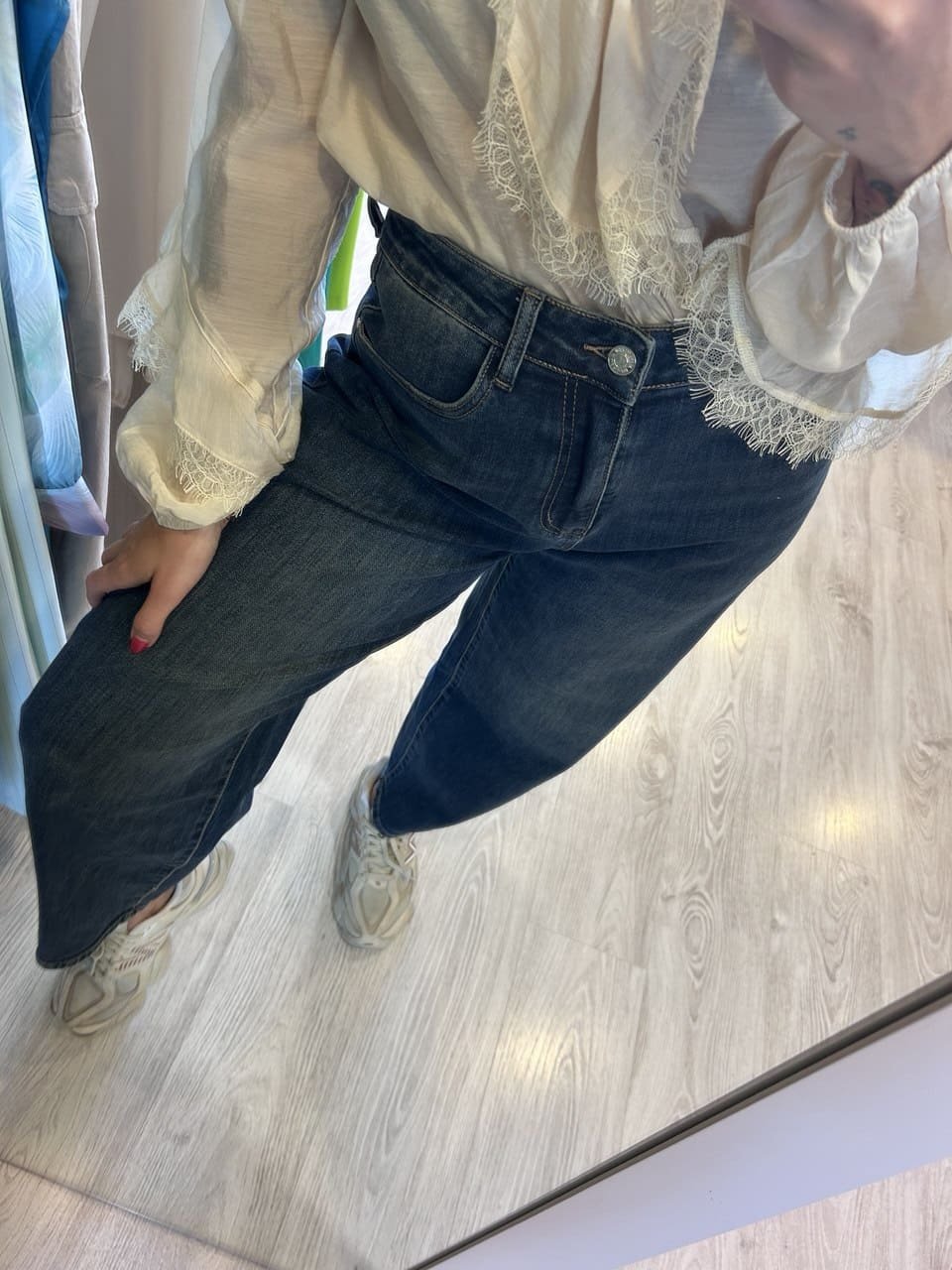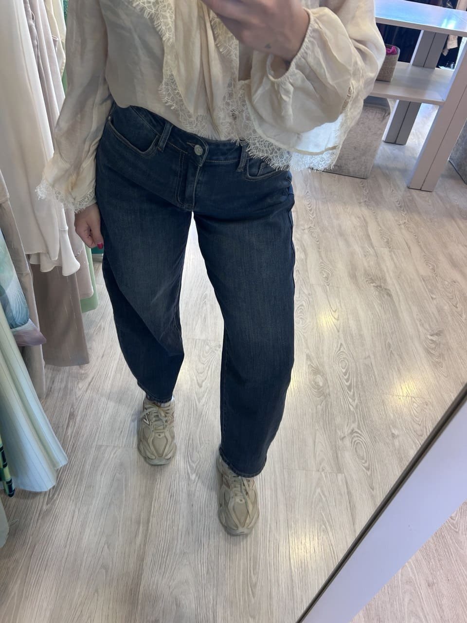 Jeans modello balloon. lavaggio scuro. vita regolare.