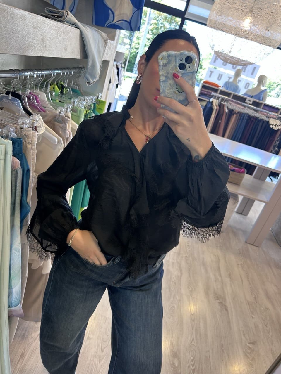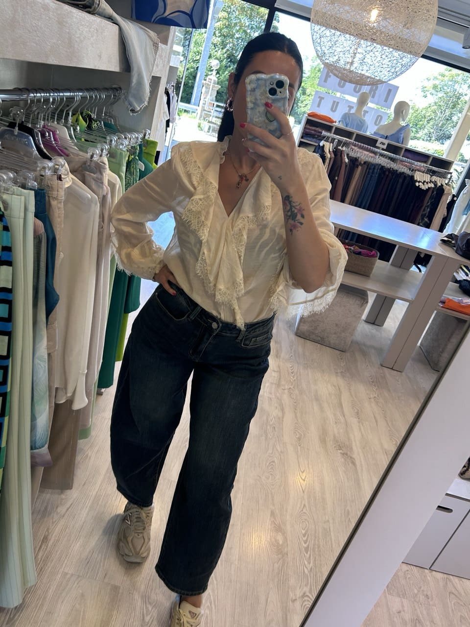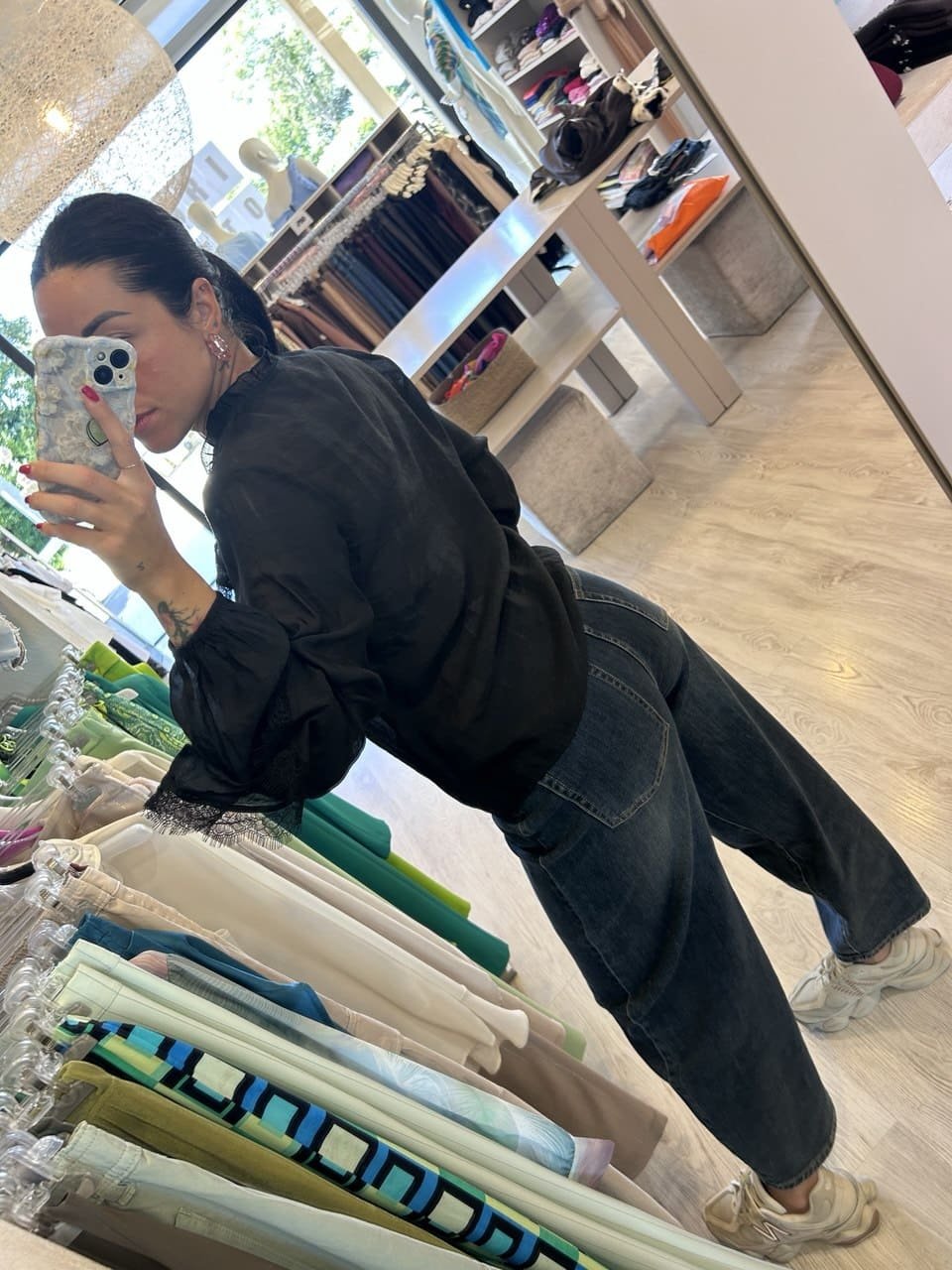 Jeans modello balloon. lavaggio scuro. vita regolare.