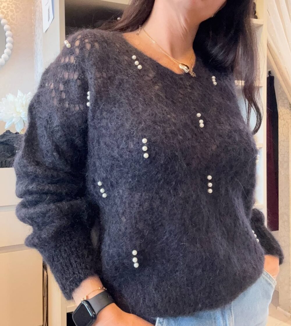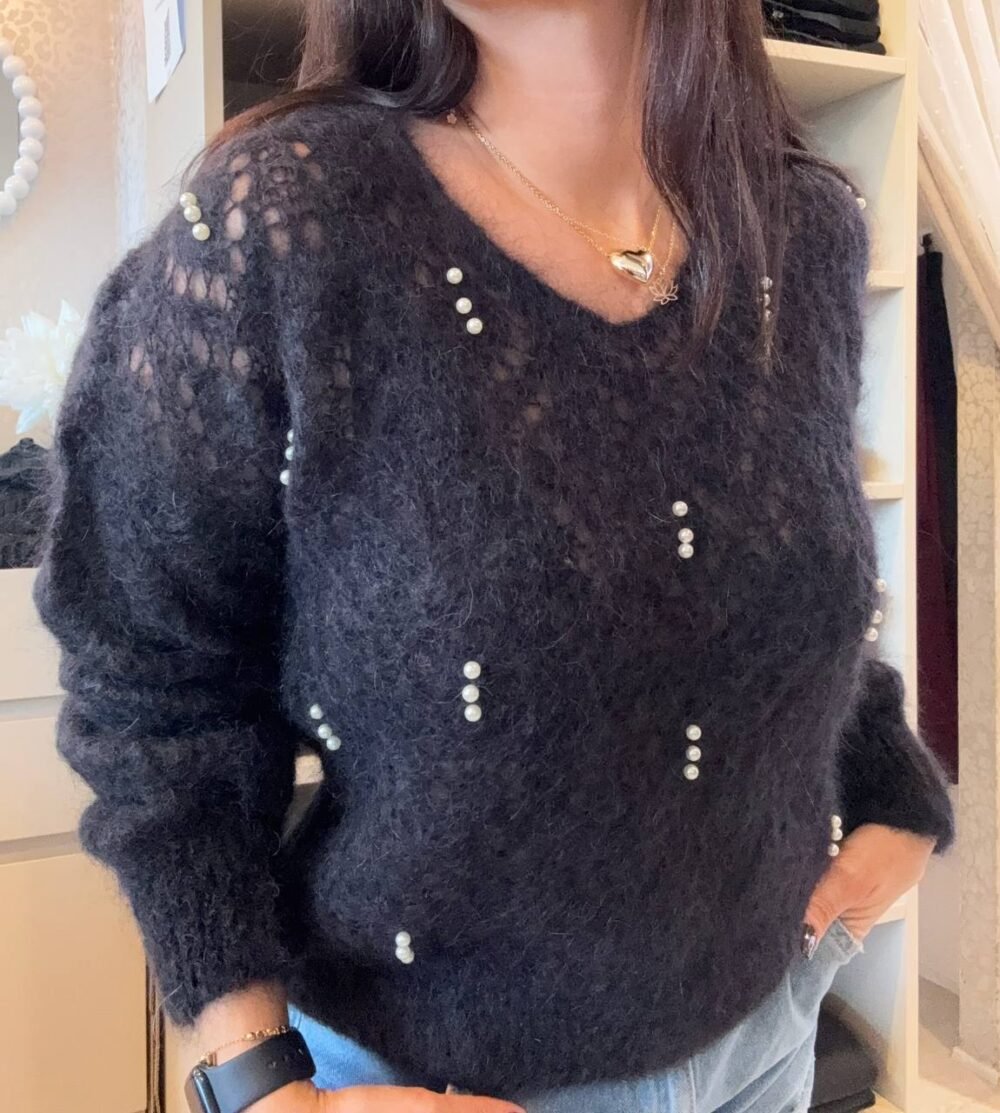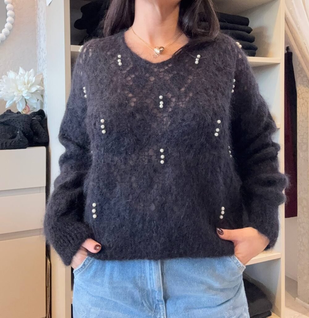 MAGLIA MISTO LANA TRAFORATA . TAGLIA UNICA . GIROCOLLO